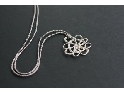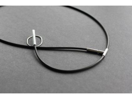 Unikátní náhrdelník se stříbrným oválem a kaučukovým závěsem. Pouze tento jeden kus.