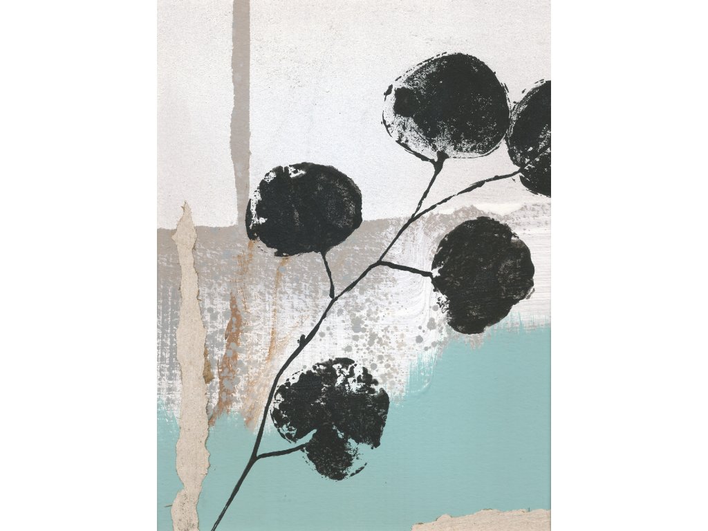 Obraz s florální tématikou vytvořený formou koláže