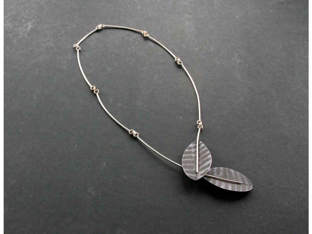 Unikátní stříbrný náhrdelník s lístečky s krásnou povrchovou strukturou