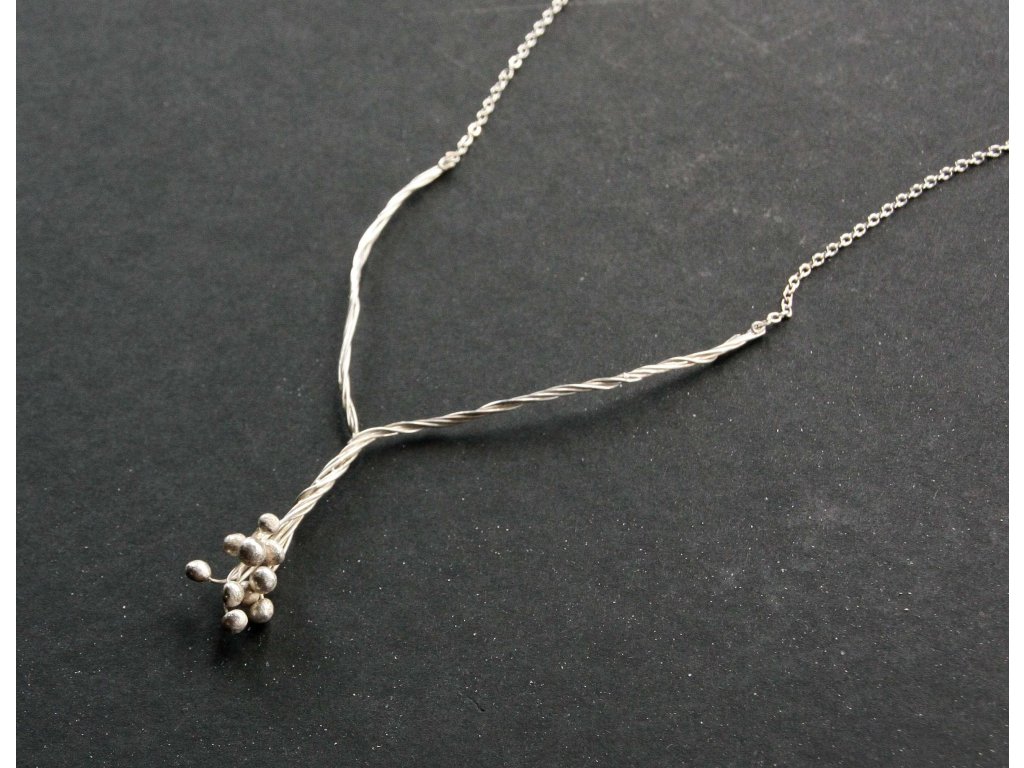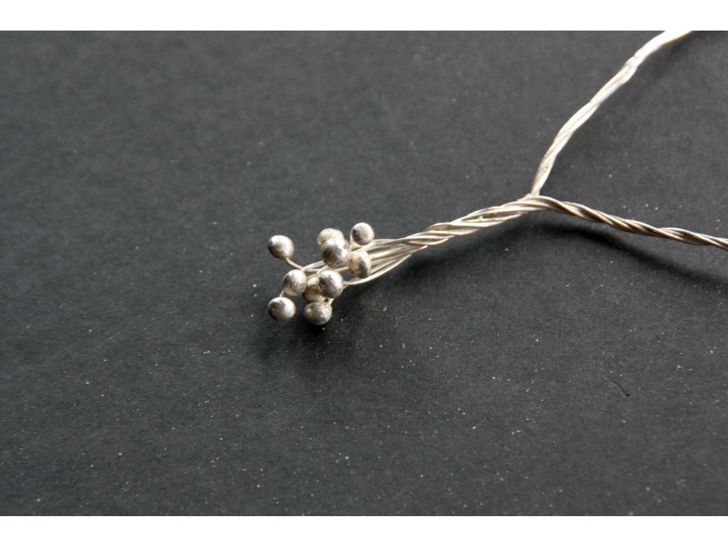 Náhrdelník je ručně splétaný z tenkých stříbrných drátků. Na konci drátků jsou kuličky různých velikostí (1,5-2,5mm)