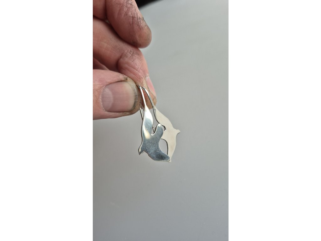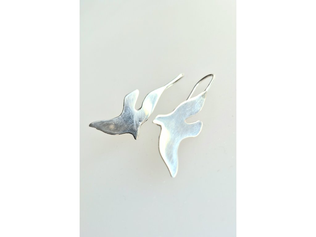 Visací stříbrné náušnice se siluetou holubice v leštěném provedení.