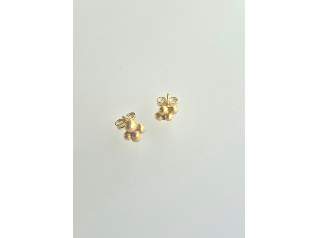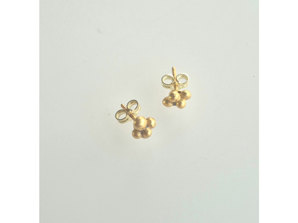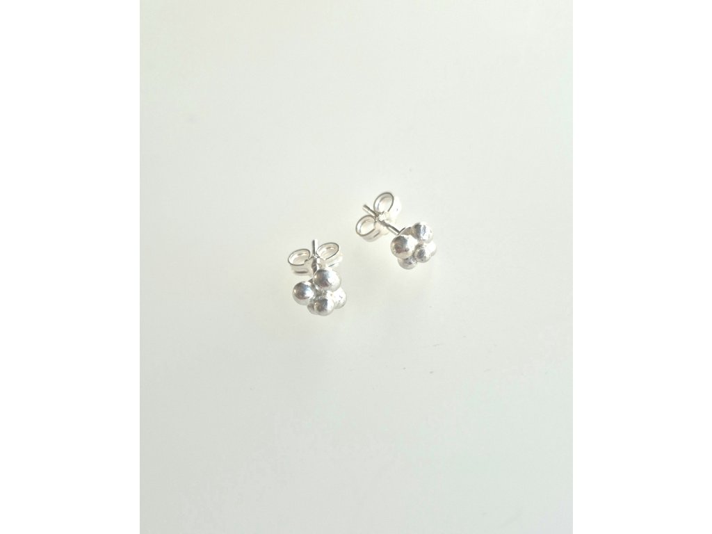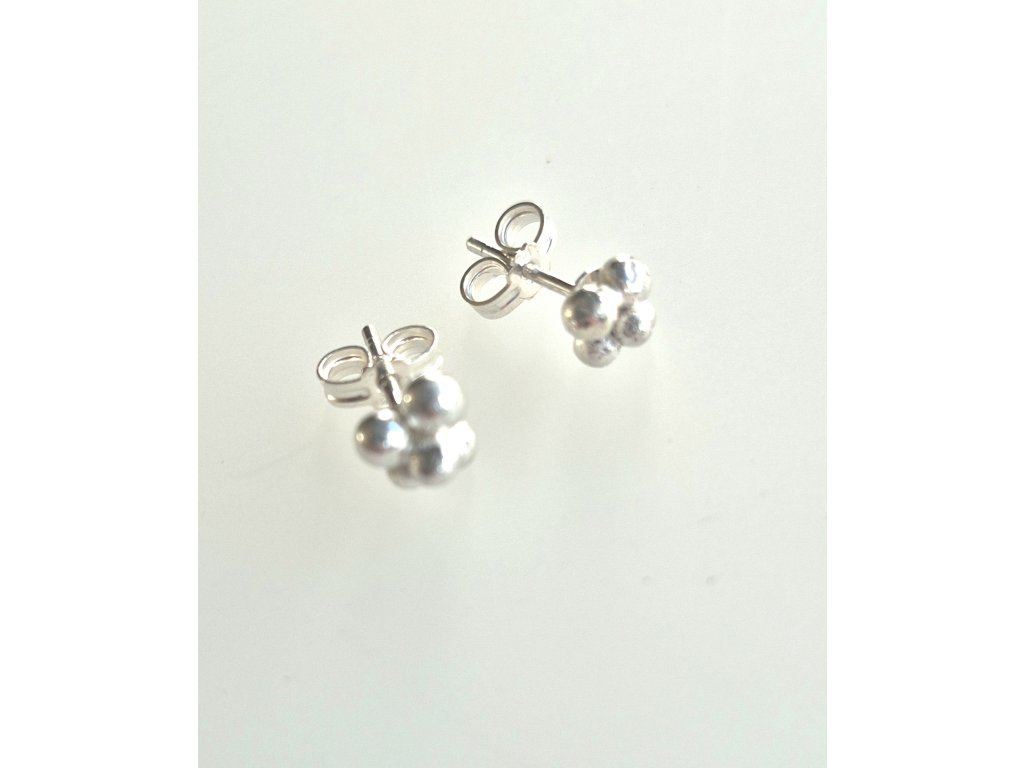 Malé stříbrné puzetové náušnice s granulací. Každá z kuliček je asi 1,5-2mm velká. Kuliček je pět poskládaných do příjemné prostorové kompozice.