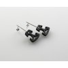 Technicistní náušnice v kombinaci stříbra a eloxovaného hliníku.