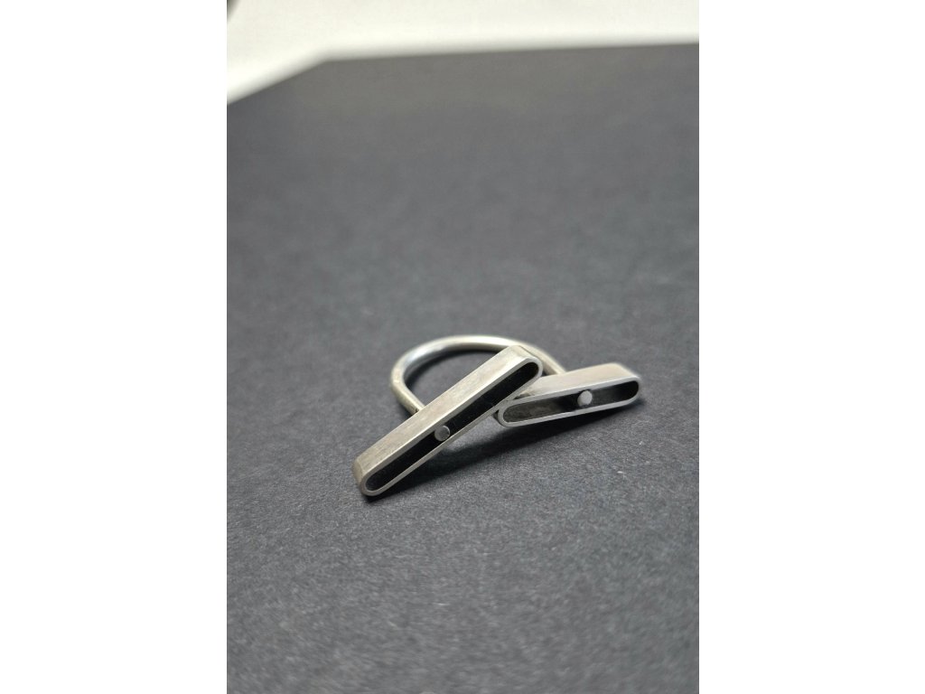 Unikátní precizně zpracovaný stříbrný prsten se dvěma oválnými segmenty